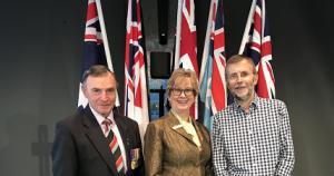 The photo shows Pipeclay President MAJGEN Jim Barry, RACV Director Merran Kelsall and speaker Dr Ross McMullin.